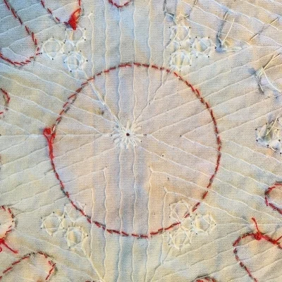 Basted 1 1/2" diameter center circle from Red & White