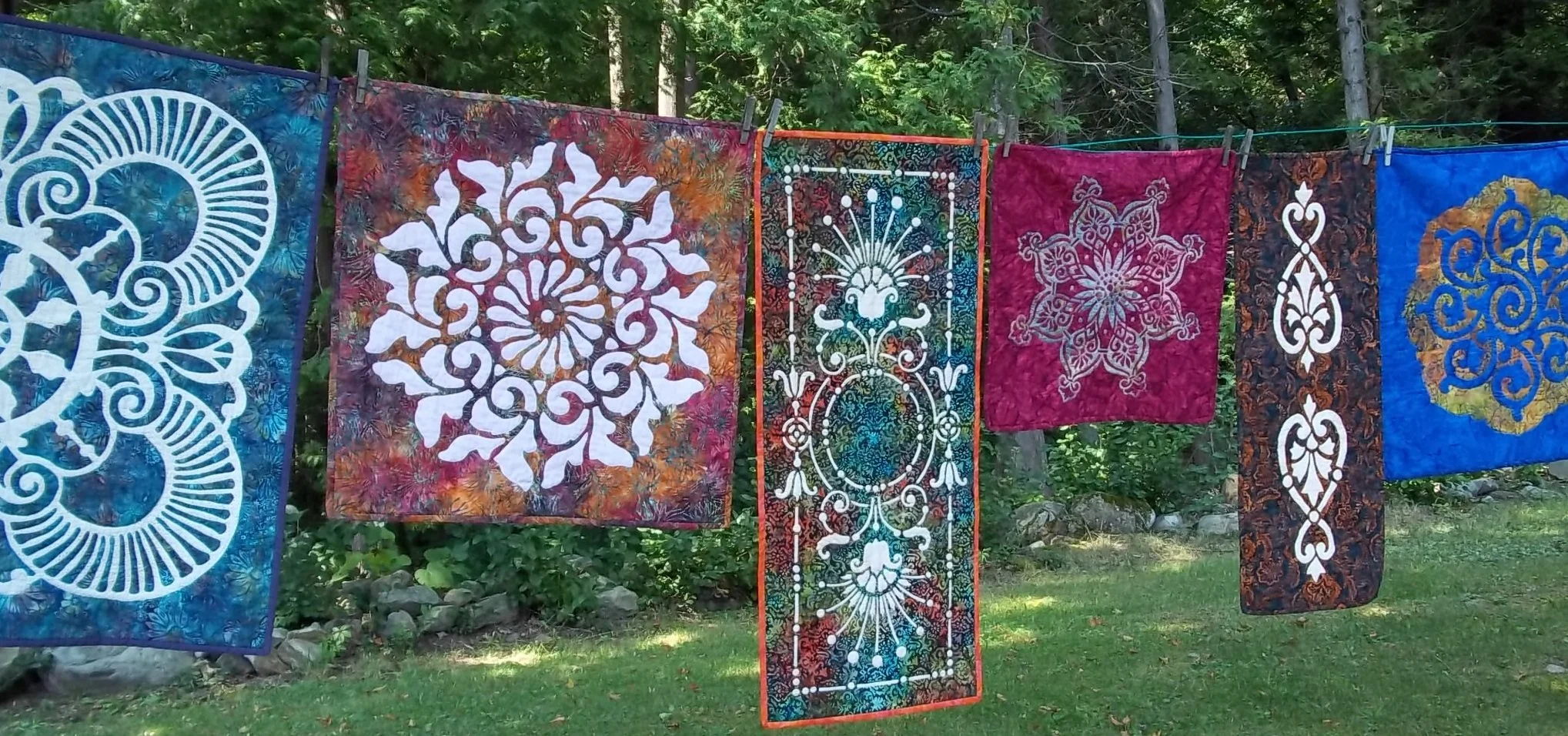 Commission an original, one of a kind quilted piece! Any of our patterns can be made just for you! They can be made as originally designed or adapted and redesigned to suit your desires. Or a new design can be commissioned just for you. You could choose an elegant floral pillow, a table runner to enhance your dining pleasure, a wall hanging or a bed quilt to snuggle up under .